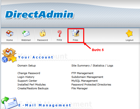 Bước 1: Bạn đăng nhập vào quản trị hosting sau đó thực hiện: