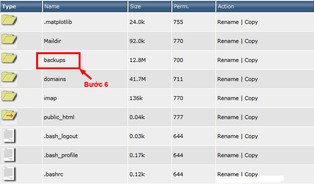 Bước 6: Nếu bạn chưa tạo backup lần nào hệ thống sẽ tự sinh ra một folder backups còn nếu đã có folder này rồi thì bạn truy cập: