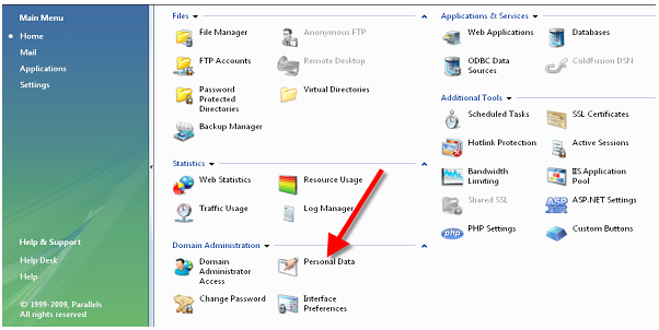 Bước 1: Ở màn hình Home, tìm tới mục “Domain Administration"/ Click vào “Personal Data”.